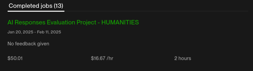 Although to be unapologetically transparent, I once dabbled in an Upwork gig as an AI response evaluator for a Chinese chatbot. It paid me $30 and some change. It meant a lot of money when I was in poverty.
